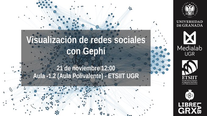 El aumento en el volumen de información necesita de nuevas herramientas para visualizarla. En el mundo de las redes sociales se han vuelto muy útil las representaciones mediante grafos, y para ello se puede usar Gephi, un software open-source creado para ello. En esta charla rápida que di para la buena gente de LibreLabGRX mostré cómo usarlo para medir y visualizar redes sociales.