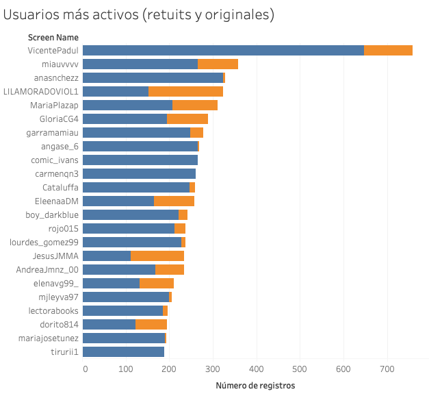 Es significativo también que un buen número de las cuentas participantes en el hashtag hayan sido cuentas recientemente creadas en este mismo mes. No estoy diciendo que sean cuentas creadas ex profeso, pero si la media mensual de nuevas cuentas estaba en los meses anteriores en unas 200, en marzo y abril esta media se dispara a más de 500 (alcanzando un pico el 13 de abril con 716 nuevas cuentas que han participado en el hashtag). Desde la aparición de la COVID-19, la incertidumbre y la necesidad de información ha acercado la red social a nuevos usuarios. Por eso, el mismo 20 de abril, con la explosión del hashtag, 277 nuevas cuentas se crearon y, éstas sí, probablemente con la intención de participar en la crítica generalizada a la Universidad.