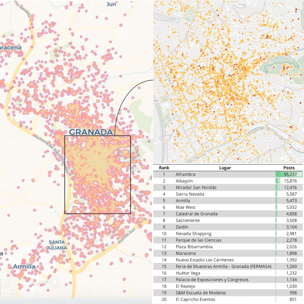 All of this illustrates how Instagram posts in Granada highlight the importance and impact of key aspects such as tourism, transforming the generated data into a showcase of the city’s image and the construction of local visual culture.